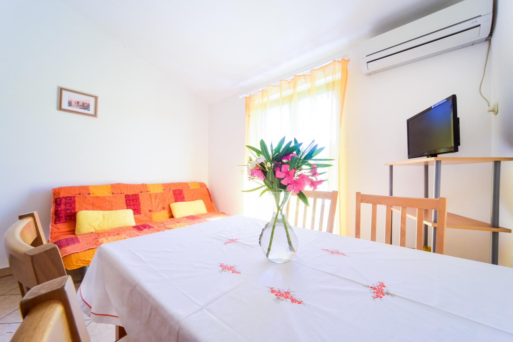 Air-conditioned apartment featuring two double bedrooms, a large balcony, satellite TV, kitchen and bathroom with...
